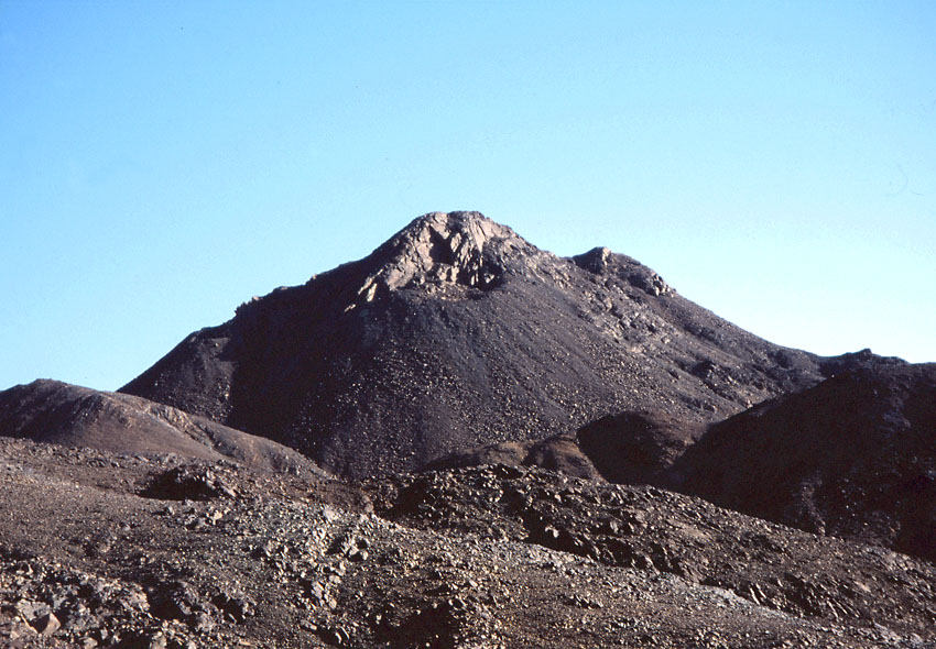 What a quarry! The central summit at Gebel Manzal el-Seyl in the Eastern Desert of Egypt. Nearly 5000 years old. Extraction took place at the top, spoil from the workings were deposited down the slope. Photo: Per Storemyr