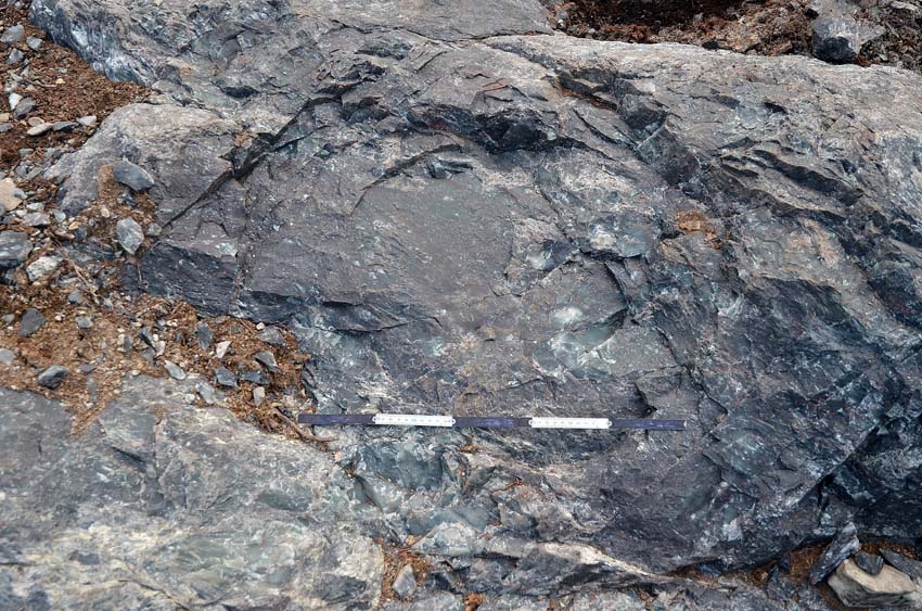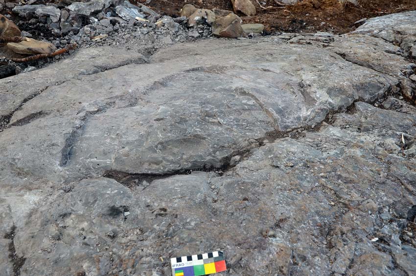 The typical circular form with convex bottom of an ancient fire set spot in the Melsvik quarries. Photo: Per Storemyr
