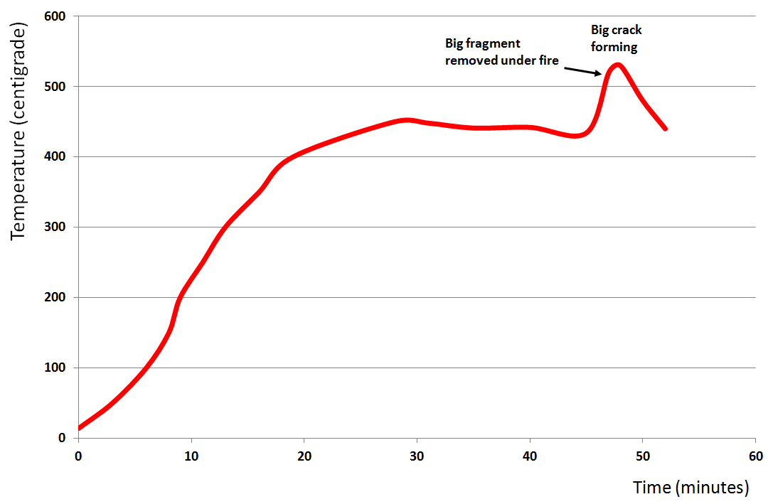 Using our standard experimental protocols we were able to produce fire spalled flake blanks over a meter long, some weighing 50 lbs or more. FYI The first version of the report is about 36 pages long not including photographs and references. The photographs are all important and one reason the work has note reached the print media in a more timely fashion.