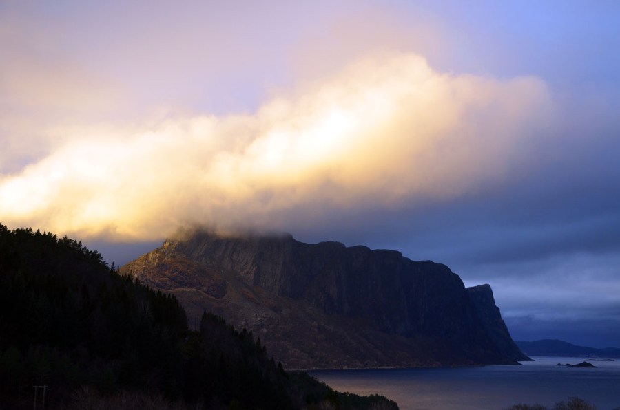 Happy New Year from Hyllestad! With a mountain and a fjord from summer to winter