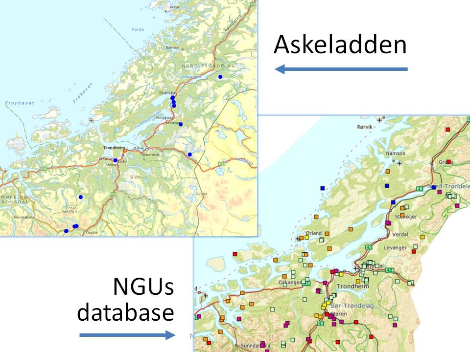 Vi kan ta Trøndelag som eksempel, en region med mange gamle steinbrudd. Dette er et resultat av at Trondheim var en geistlig hovedstad i middelalderens Norge-Europa, med Nidarosdomen i sentrum, men også fordi det her finnes mange karakteristiske brudd fra den nye pionertiden fra midten av 1800-tallet, for eksempel fra skifer- og helleindustrien og gatesteinindustrien. Når vi ser på kartene over verneverdige brudd, kommer Askeladden opp med 12 stykker. NGUs kart viser 130 brudd (uten at det store antall kvernsteinsbrudd i Selbu er inkludert). Nå er ikke alle bruddene gamle og verneverdige, men mange titalls burde være det.