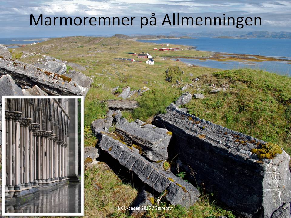 For eksempel historien om den hvite søylemarmoren i havet utenfor Fosen, på øya Allmenningen. Marmoren ble brukt til noe sånt som 10.000 søyler på Nidarosdomen i middelalderen, for 800 år siden. Og grunnen til at man reiste helt ut i havgapet, langt fra Trondheim, var at man ville etterligne engelskmennenes intense bruk av marmor – eller rettere sagt en hard kalkstein som kom fra et annet sted ved havet, nemlig Purbeck-halvøya i Dorset. Men det var ikke bare derfor: For geologien kan fortelle oss at det her ute på Allmenningen finnes en søylemarmor som knapt har sin make i Norge. Derfor trenger vi geologer når vi vil forstå gamle brudd.