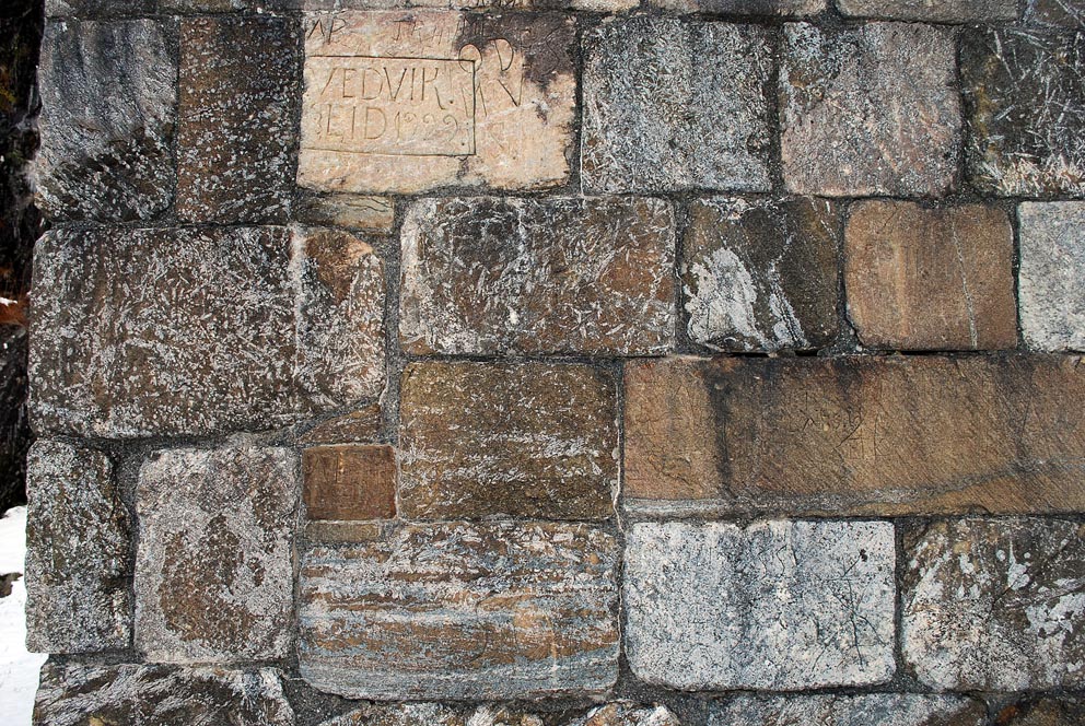 Gneis kom for alvor inn som det viktigste byggematerialet utover på 1100-tallet – som småfallen murestein ved byggingen av det store tårnet og den mektige terrassen. Senere ble gneis helt dominerende under oppføringen av “storsteinsmurverket” i klosterfløyen. Vi har funnet små steinbrudd som leverte både murestein og store helleflak rett ved klosteret. Men i stor grad ble slik stein plukket fra urer og rasområder – og ikke minst i fjæra.