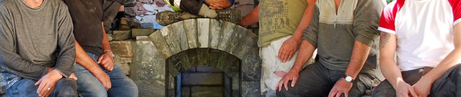 Last year we built a limekiln at Millstone Park in Hyllestad, Western Norway, reported on this website. The kiln was built in a traditional fashion, following Roman and Medieval principles. Experimental archaeology! After one burn, which gave excellent quicklime, the kiln was, unfortunately, badly damaged. Cracks in the masonry! So we had to rebuild the kiln to be able to produce more quicklime! Over the last few months a team of professional, Norwegian masons and local volunteers, 15 people altogether, has undertaken the task: Just a little more work to be done, and soon we’ll have two(!) limekilns, one big and one small – for producing “historic” quicklime in the years to come. For restoring old stone buildings.