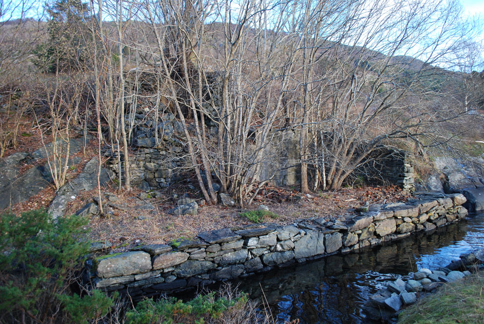 Det gamle kalkovnsområdet i Smilla. Ovnen ramla ned på 1970-tallet, men all annen infrastruktur er bevart. Foto: Per Storemyr