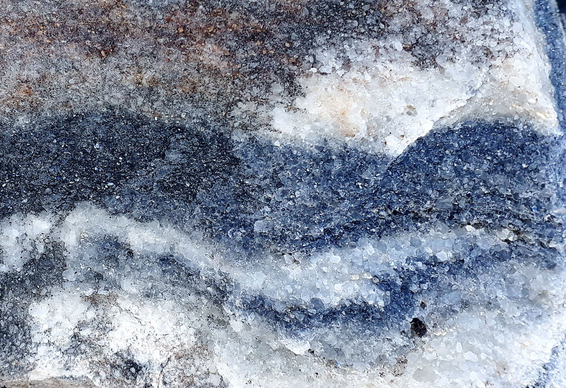 Dette er Smillamarmoren, båndet hvit og blålig, middelslkornet. Foto: Per Storemyr