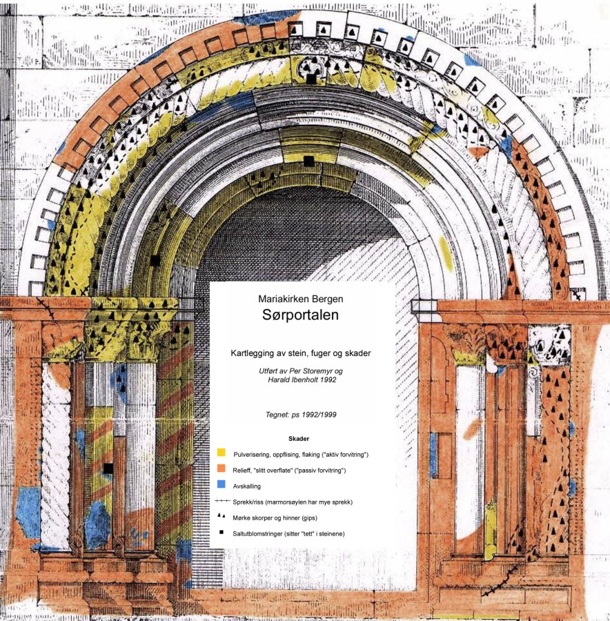 Skadekartlegging av Mariakirkens sørportal i 1992 (P. Storemyr og H. Ibenholt)