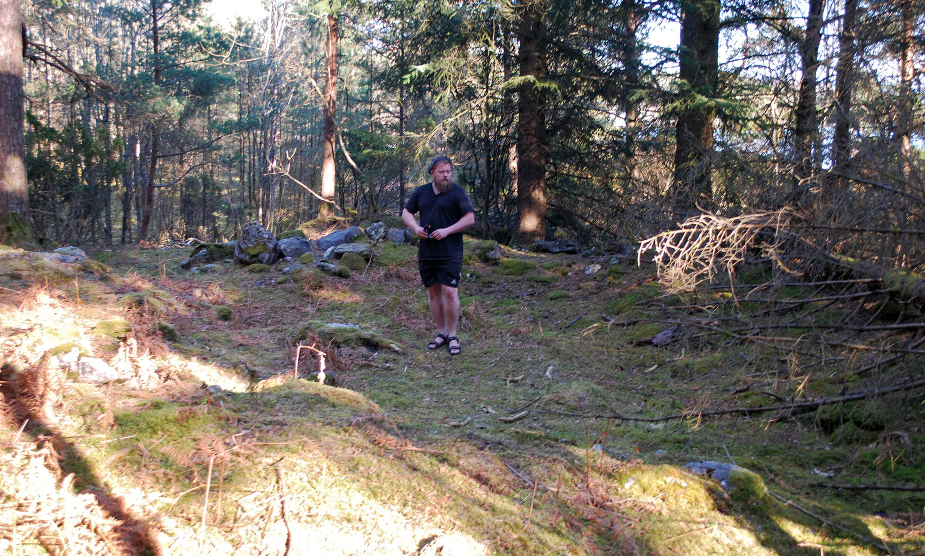 Tore Granmo midt i ringen av stein som markerer kalkmila ved Gassasundet. Foto: Per Storemyr 2022