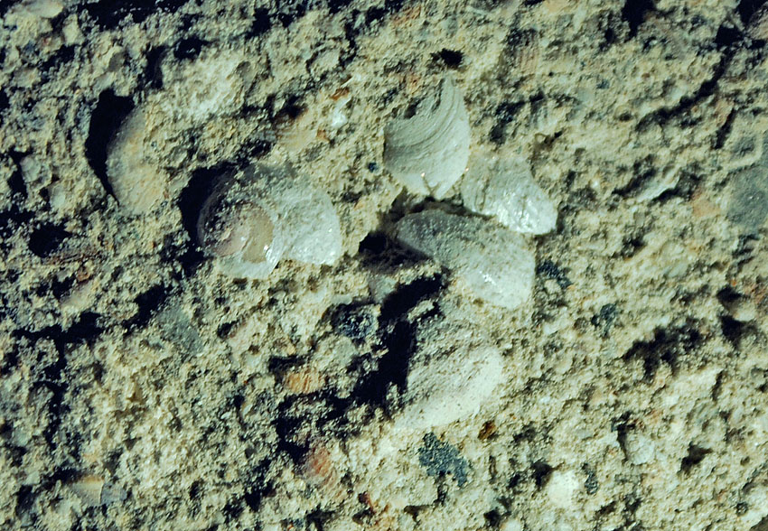 Moster gamle kirke, korets gavl, med skjellsand som tilslag i murmørtelen fra middelalderen. Foto: Per Storemyr 2022