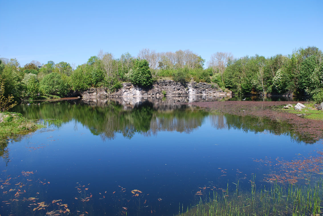 “Synken” i Mosterhamn – for ikke lenge siden et stort marmorbrudd, nå en fredelig, vannfylt oase. Foto: Per Storemyr 2021