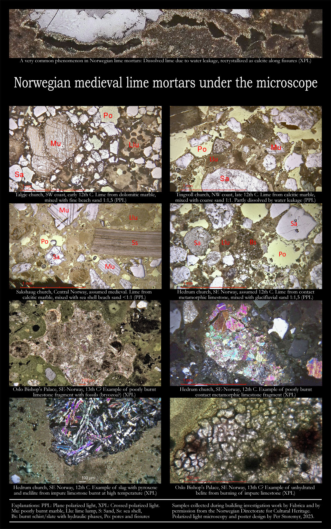 A taste of Norwegian medieval lime mortars under the microscope. Click on image for higher resolution.