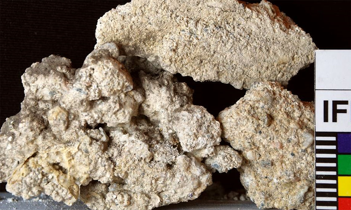 Tingvoll kirke: Mørtelprøve fra innvendig vegg i gangsystemet på nordsiden av skipet. Foto: Per Storemyr