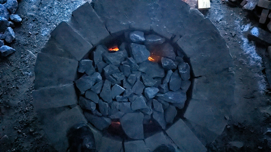 Ferdig fylt ovn fyres kort opp for å sjekke trekken.