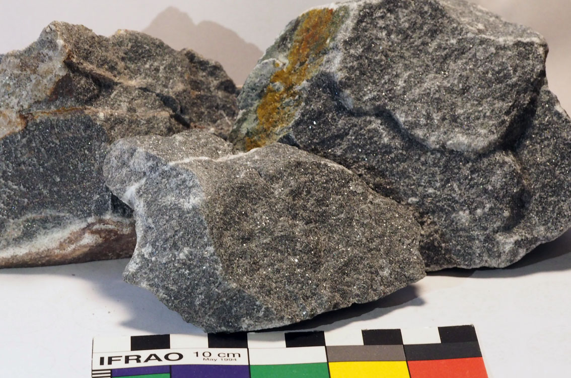 Typiske, gråblå, ganske rene biter av Brevikkalk før de brennes.