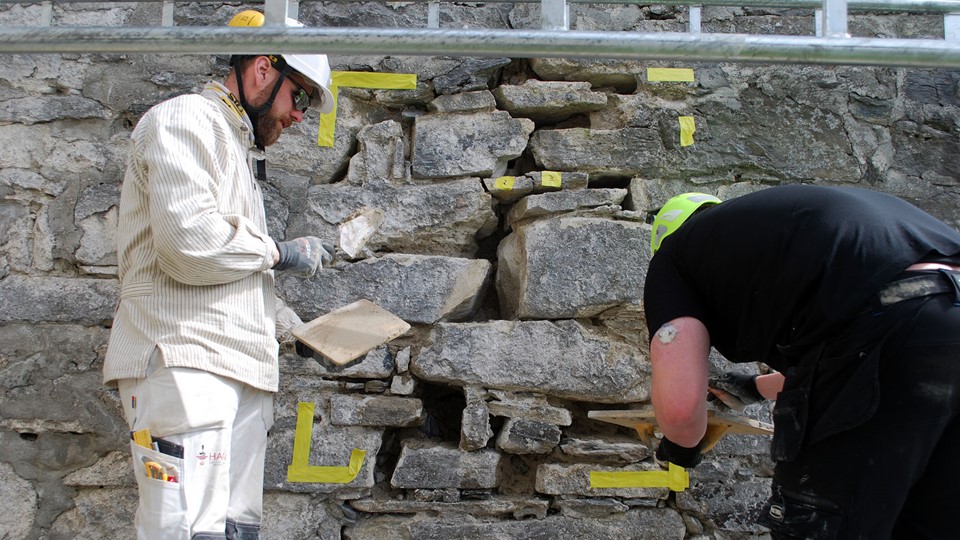 Mye restaureringsarbeid i dag dreier seg om å fjerne/hogge vekk sement og erstatte med gammeldags kalk!