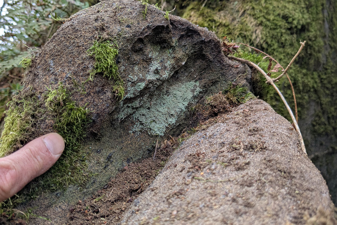 Sterkt forvitret gabbro med antydninger til “småtafoni”. Foto: PS