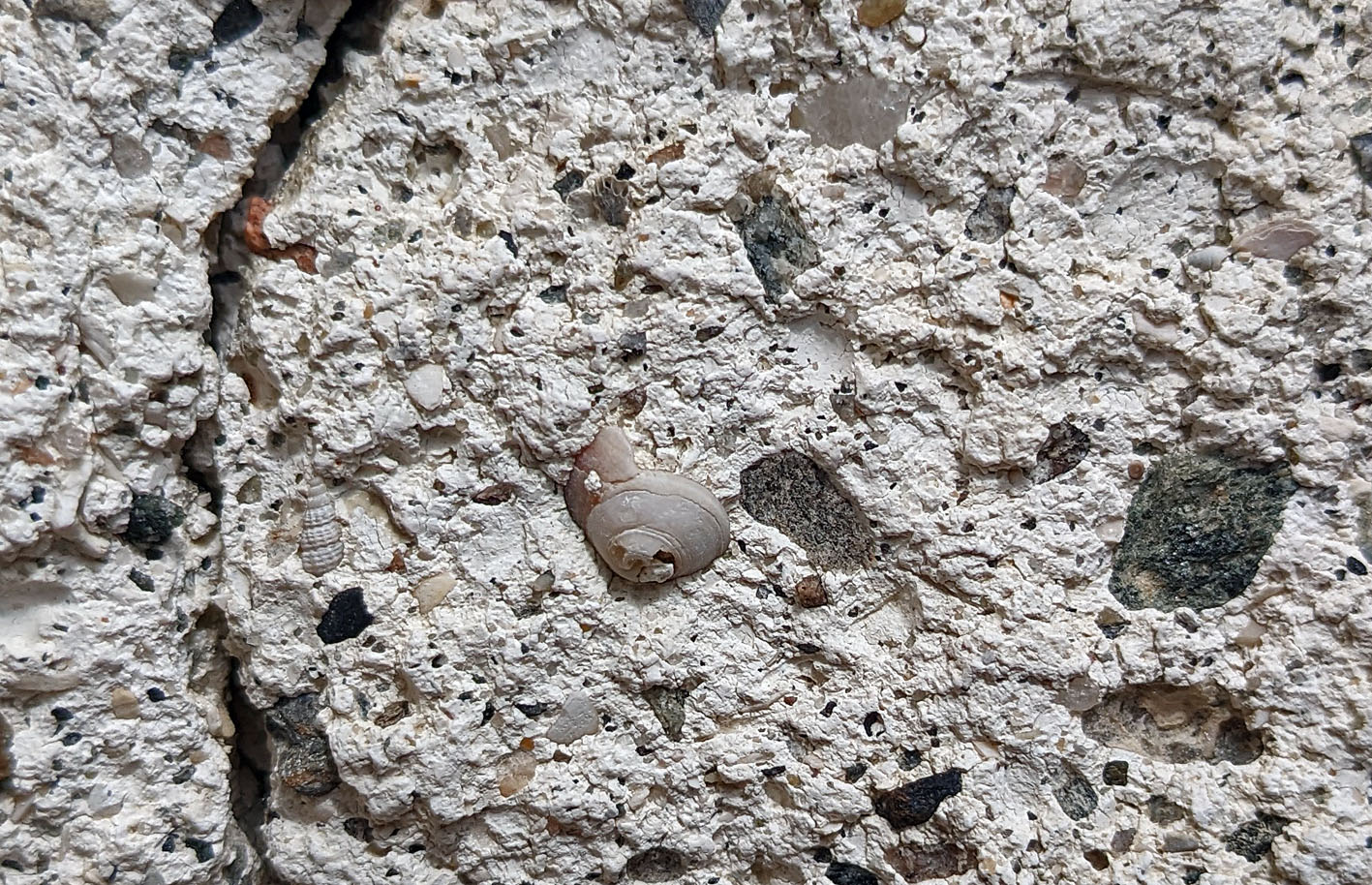 Old lime mortar with shell sand aggregate in Sakshaug old church, Central Norway. Photo by PS