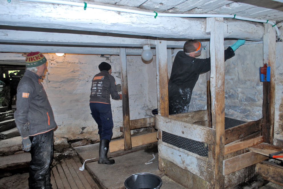 Havråtunet, fjøs: Kalking med Skaftåkalk