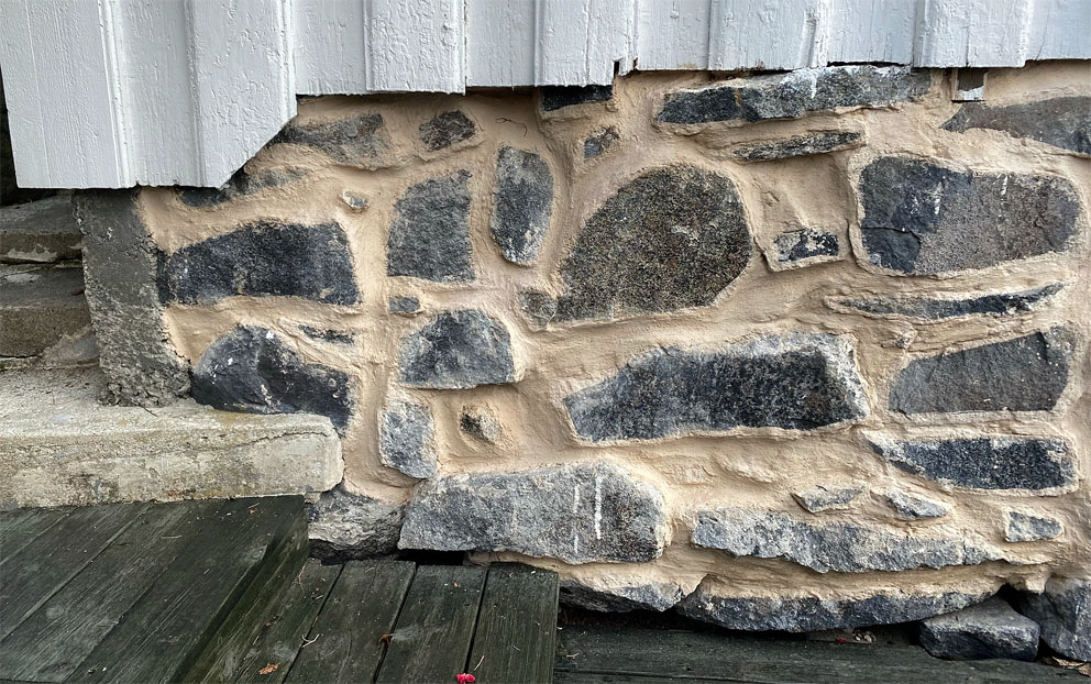 Eldre hus, Risør: Spekking av grunnmur med Hyllestadkalk. Utført under kurs ledet av Tore Granmo. Foto: Åse Tveitnes