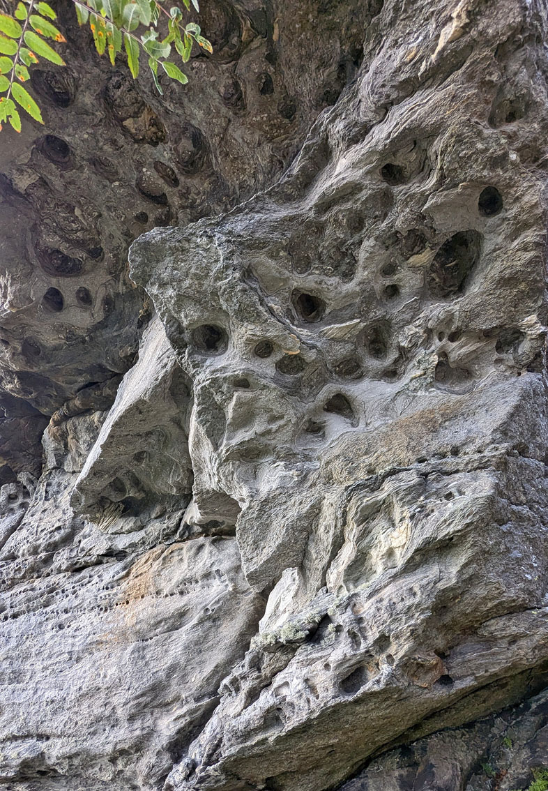 Tafoni in mylonitic gneiss, Fjøløy by Stavanger, S-Norway. Photo by Per Storemyr