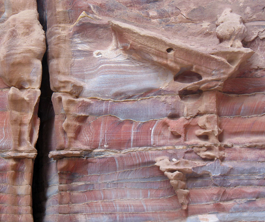 Tafoni in Cambrian sandstone, a Nabatean tomb, Petra, Jordan. Photo by Per Storemyr