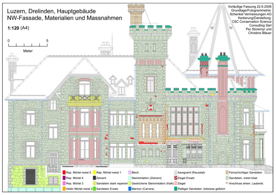 Storemyr, P. & Bläuer C. (2009): LU-Luzern, Dreilinden. Musikkonservatorium. Zustand, Gefährdung und Erhaltung. Report R.0091.01, Conservation Science Consulting Sàrl, Fribourg (CH), 122 p. [Condition, risk analysis and conservation concept at the Dreilinden estate in Lucerne]