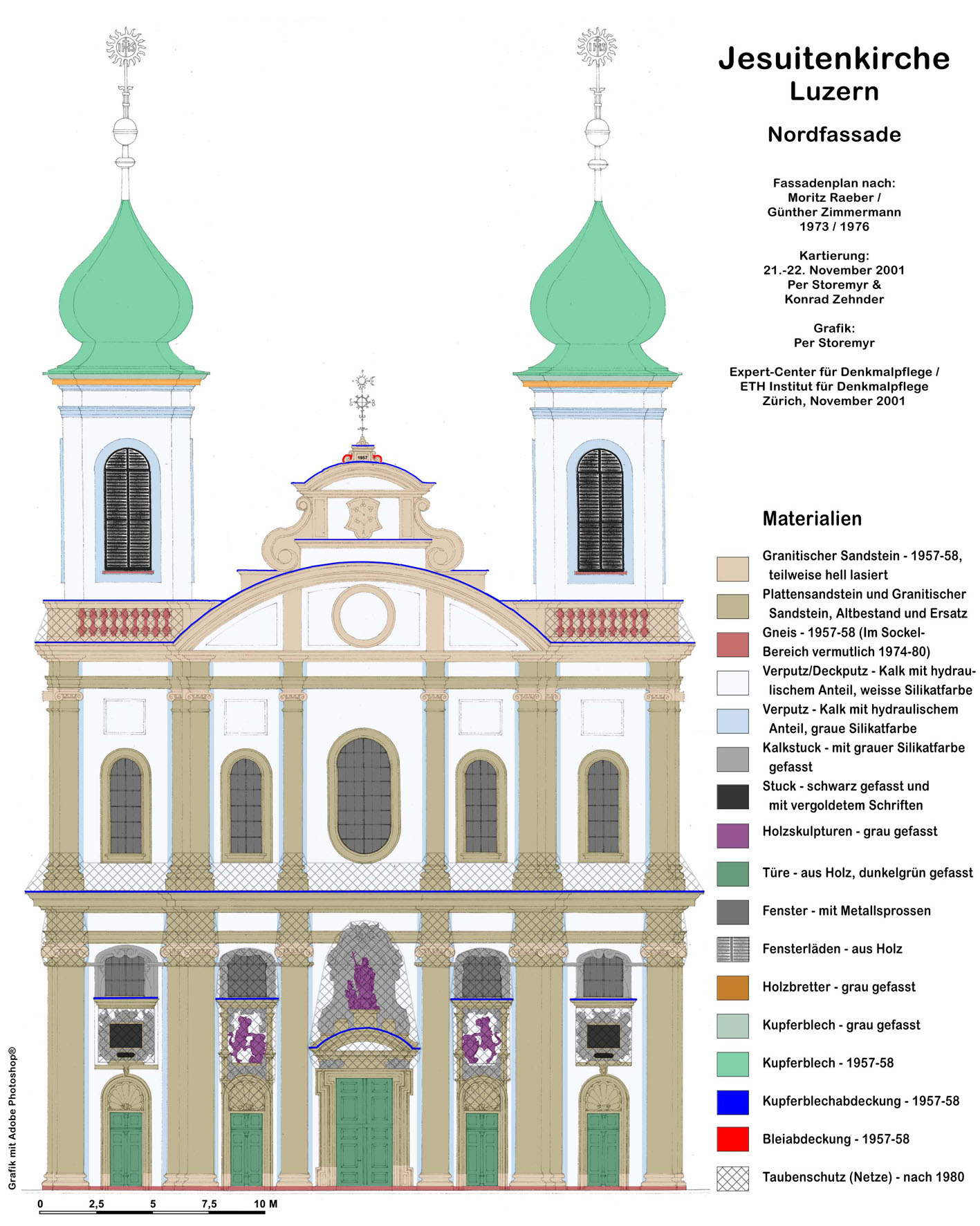 Storemyr, P. & Zehnder, K. (2001): Jesuitenkirche, Luzern: Restaurierungsgeschichte, Materialien, Schäden und Pflegekonzept der Nordfassade. Bericht, Expert-Center für Denkmalpflege/Institut für Denkmalpflege ETH, Zürich, 40 p. [Church of the Jesuits, Lucerne: Restoration history, materials, damages and conservation strategy]