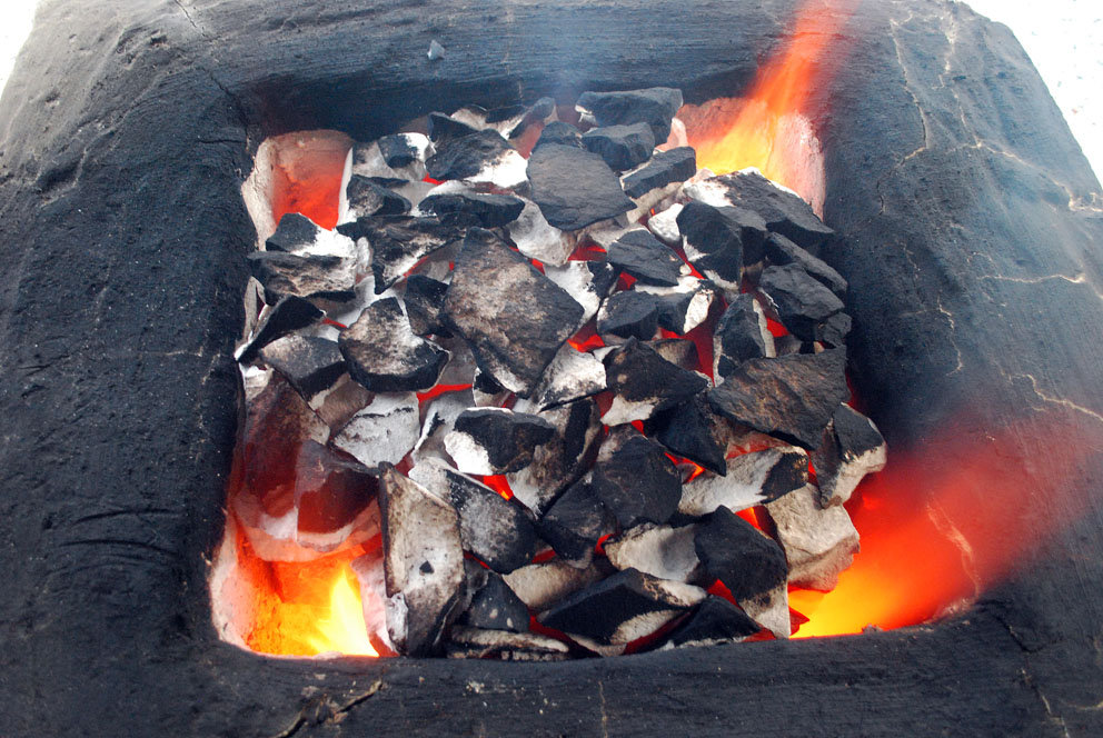Etter at fyringen (med 60 cm tørr furuved) har startet, tar det 3-4 timer før det er god glød rett under toppen